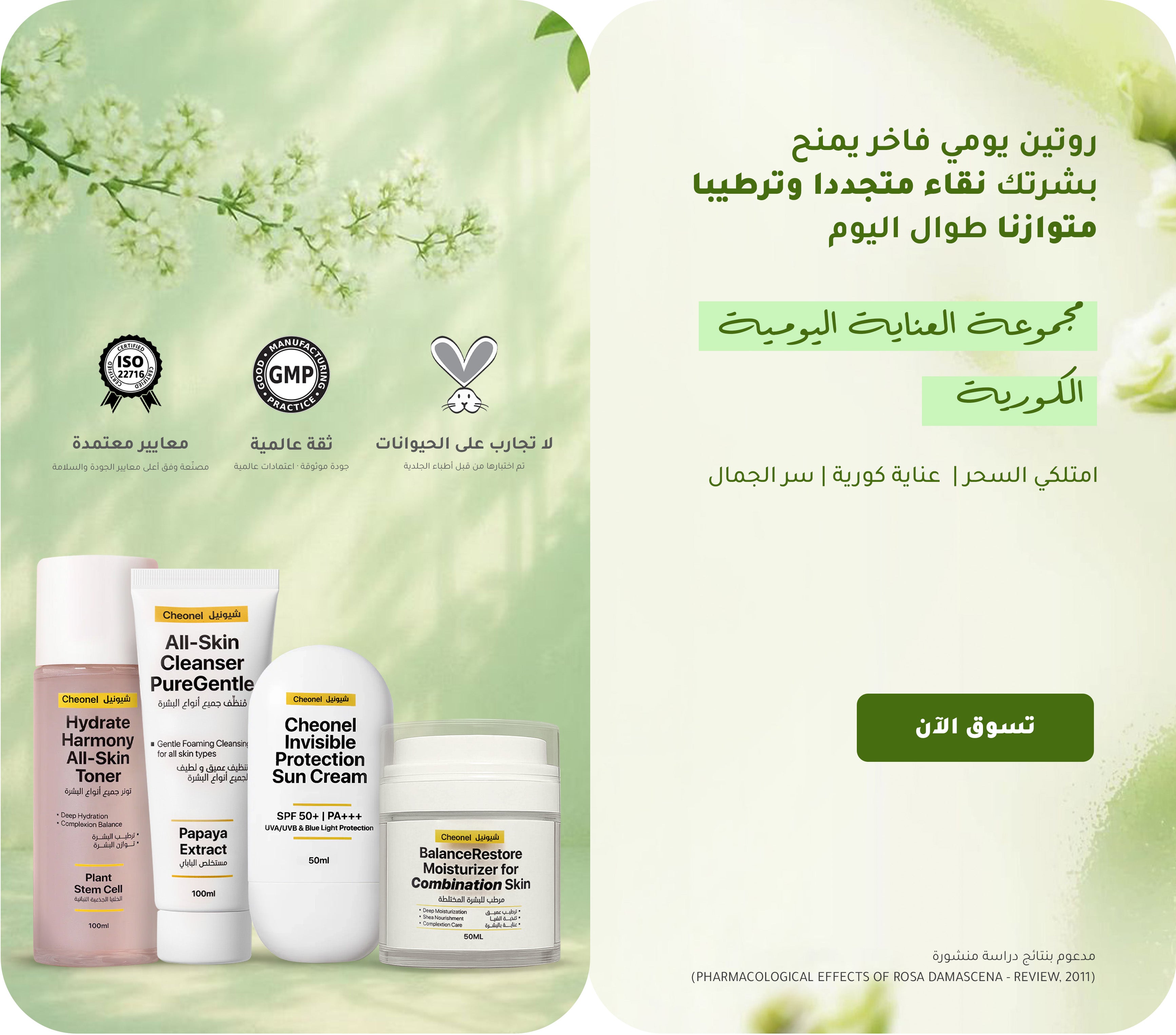 Founded in 2023 in South Korea, Cheonel was born from a passion to develop high-quality, eco-friendly, and scientifically proven skincare solutions that meet the unique needs of those living in the Middle East—where the desert climate can challenge even the healthiest of skin.